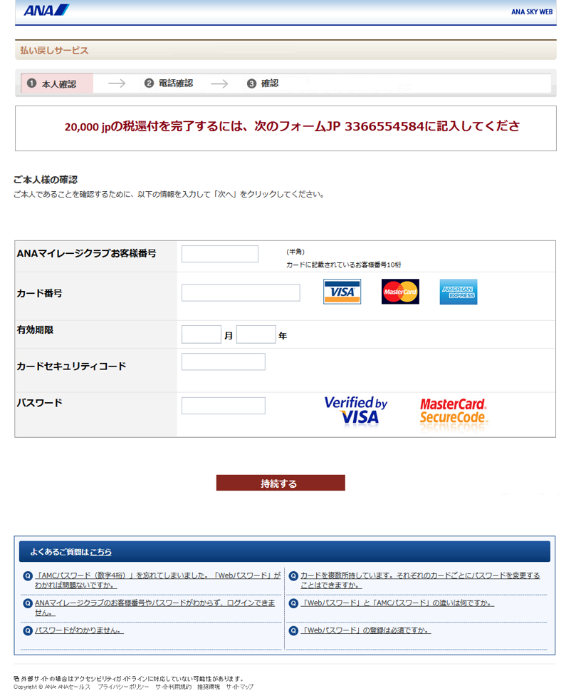 偽のwebサイトへ誘導してカード情報などを入力させようとするものです。ご注意ください。