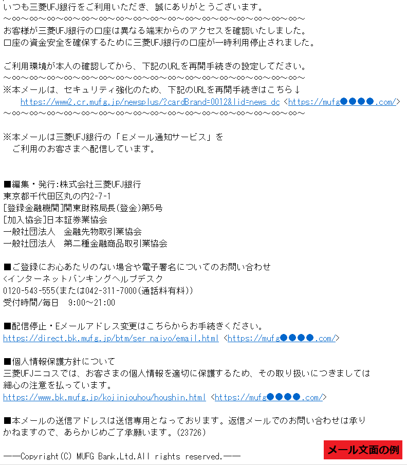 <重要>【三菱UFJ銀行】異なる端末からのアクセスを確認のお知らせ