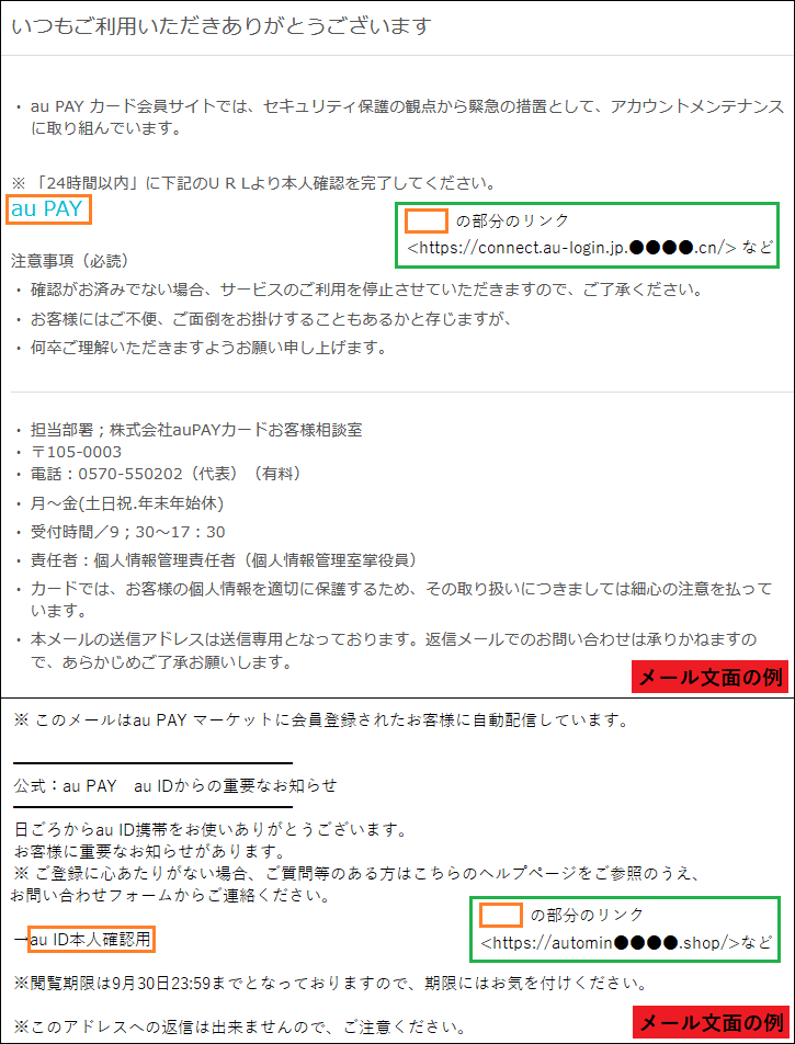 【au ID】auかんたん決済の本人確認のお知らせ、情報を更新してください。メール番号:M●●●●