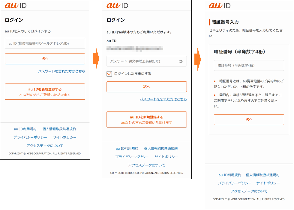 【au ID】パスワードリセット