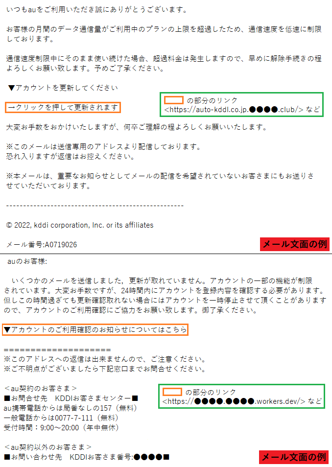 【重要なお知らせ】auサポートの緊急の連絡、情報を更新してください。メール番号:M●●●●