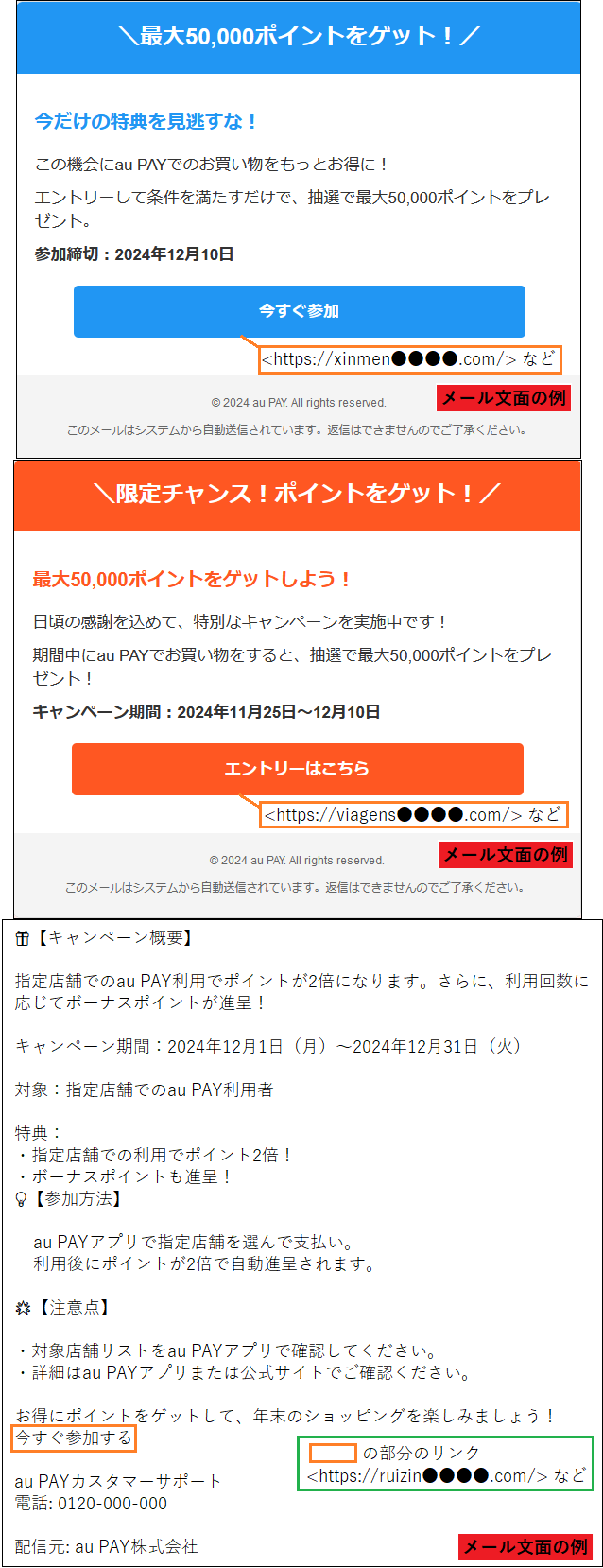 ※上記以外の類似フィッシングサイトが公開される可能性もあります。