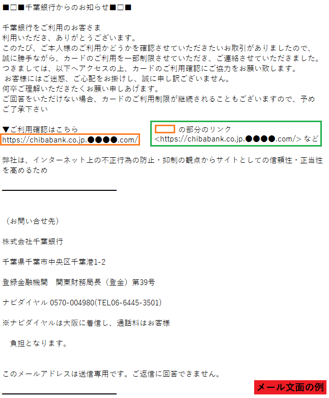 「千葉銀行」を騙るフィッシング詐欺が確認されたため、フィッシング対策協議会が注意を呼びかけています。メールで偽のwebサイトへ誘導してログイン情報などを入力させようとするものです。ご注意ください。