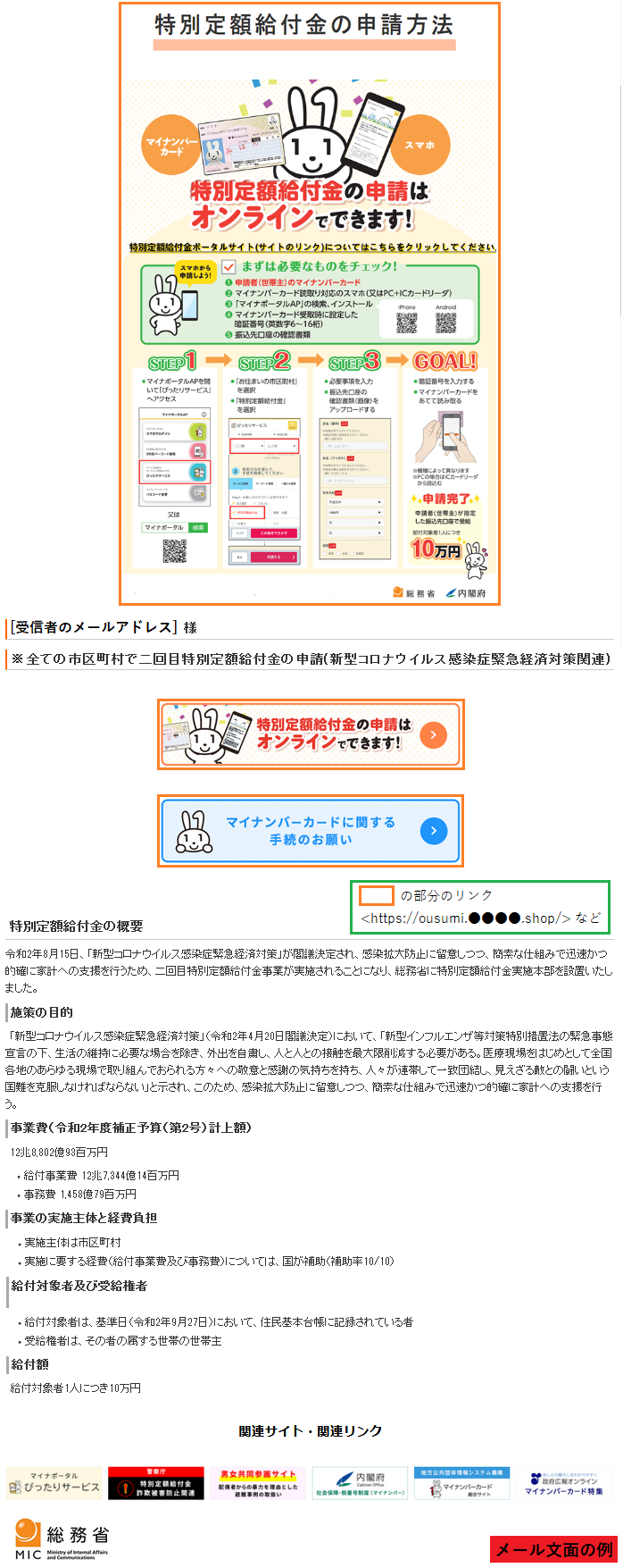 昨年10月に出回った「特別定額給付金に関するフィッシングメール」が、現在も出回って