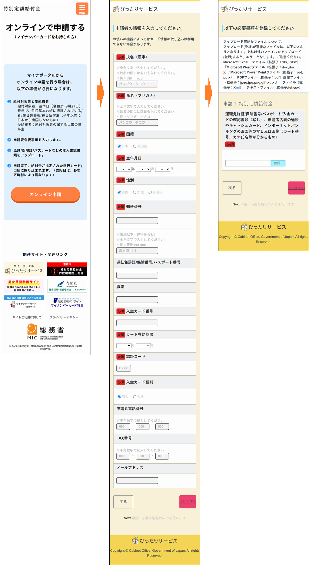給付金等に関するSMSより誘導されるフィッシングサイト(出典:JC3)