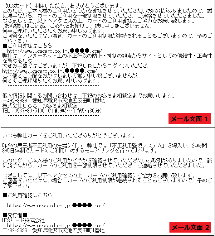 UCSカード株式会社から緊急のご連絡