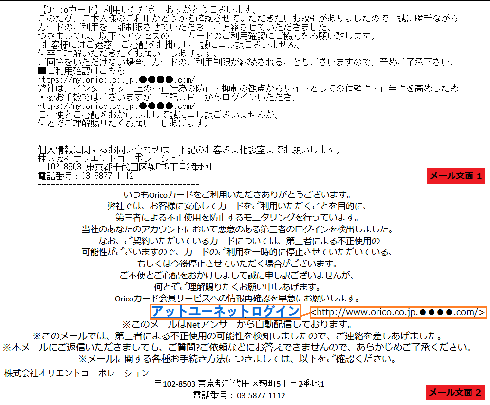 【最終警告】オリコカード からの緊急の連絡 [メールコード ●●●●]