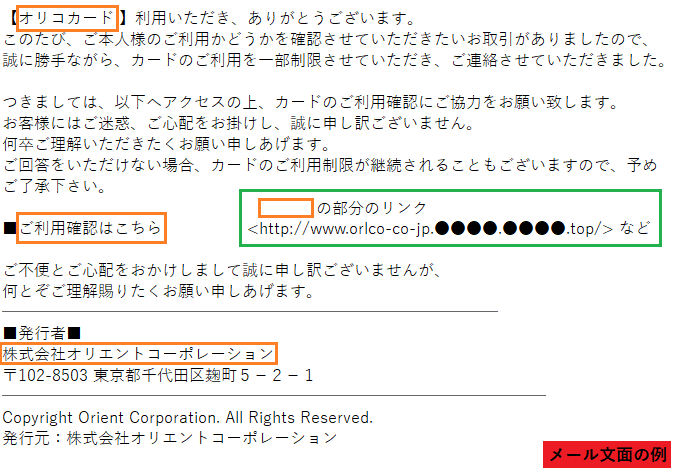 【重要なお知らせ】Oricoカード ご利用確認のお願い [メールコード ●●●●]