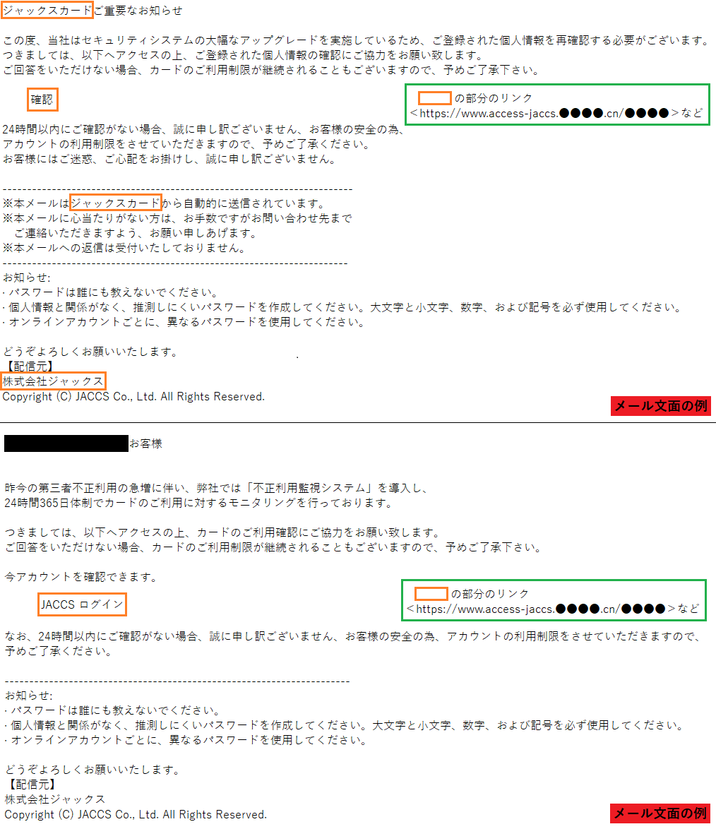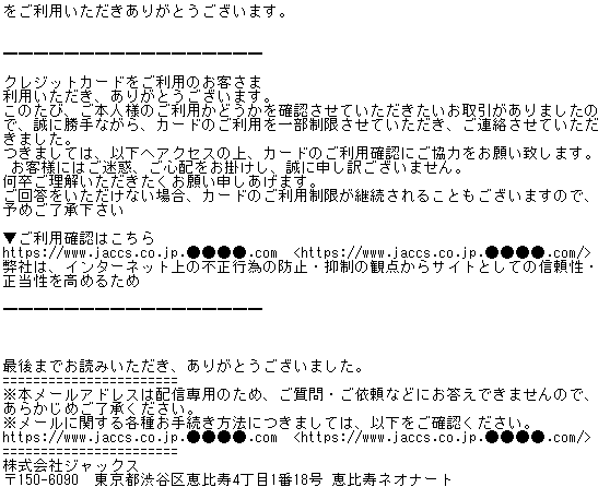 【重要】JACCSカード からの緊急の連絡
