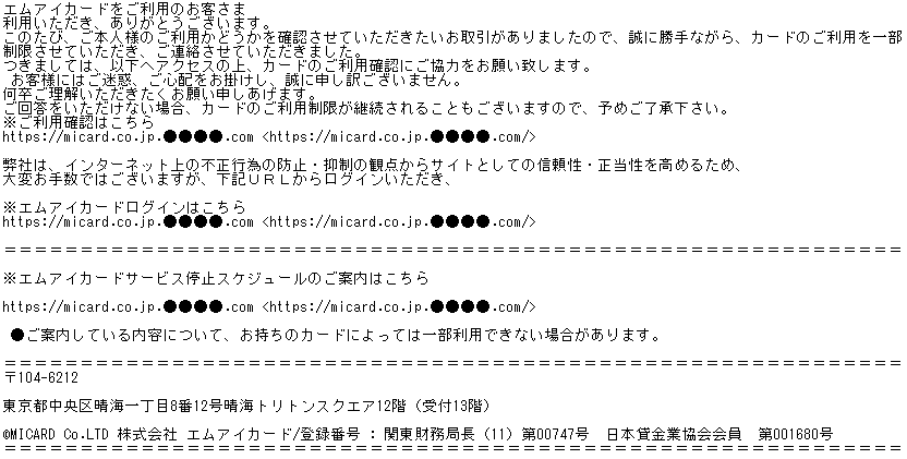 【重要なお知らせ】エムアイカード ご利用確認のお願い