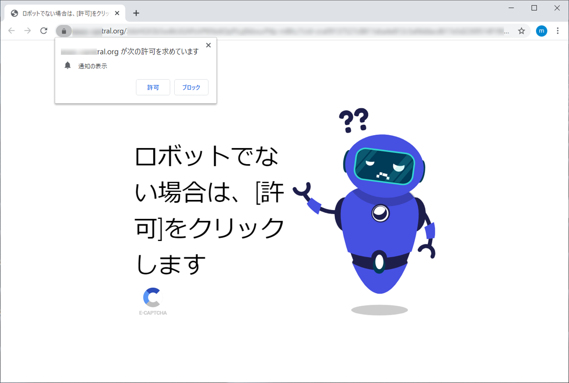 「許可」を押してしまうと、不審サイトの通知許可がブラウザに登録されます。