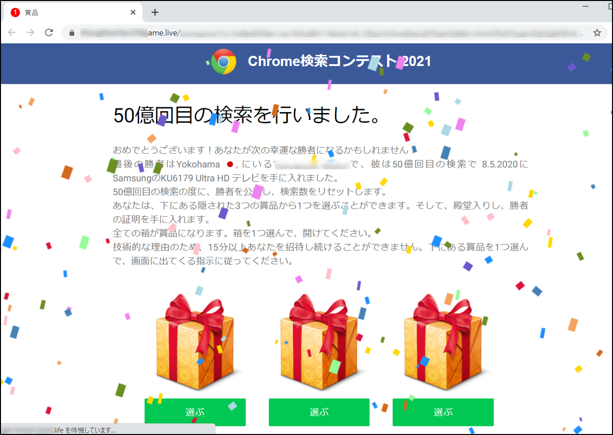 「偽の当選サイト」が表示される事例