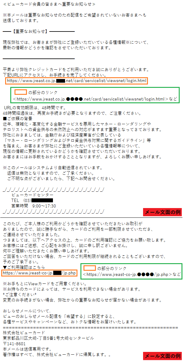 ※上記以外の類似フィッシングサイトが公開される可能性もあります。