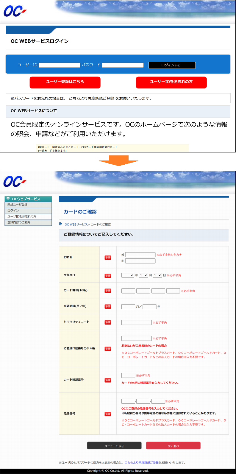 OCカードWEBサービスご利用確認