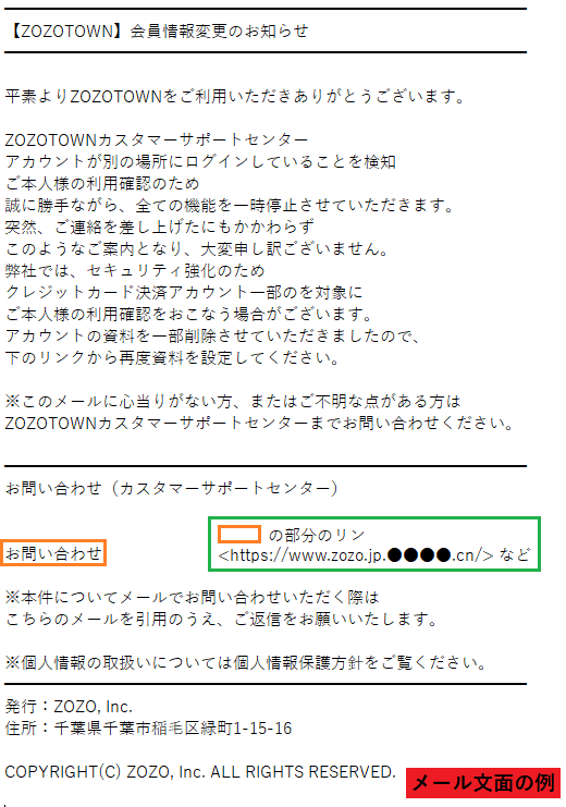 「ZOZOTOWN」を騙ったフィッシング詐欺が増加していると、フィッシング対策協議会が注意を呼びかけています。偽のwebサイトへ誘導して以下の情報を入力させようとするものですのでご注意ください。