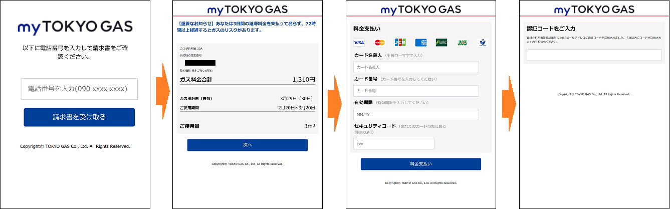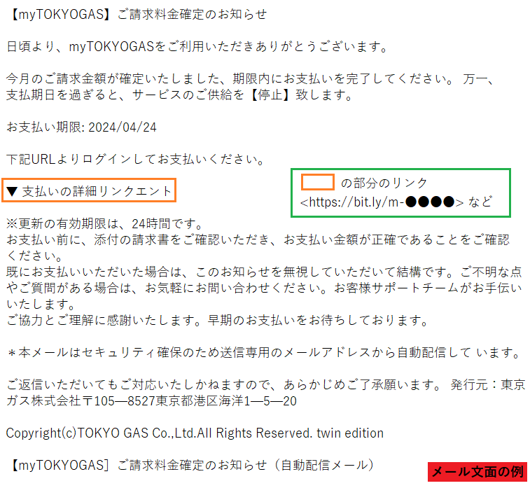 【myTOKYOGAS】ご請求料金確定のお知らせ お客様のお支払い方法が承認されません