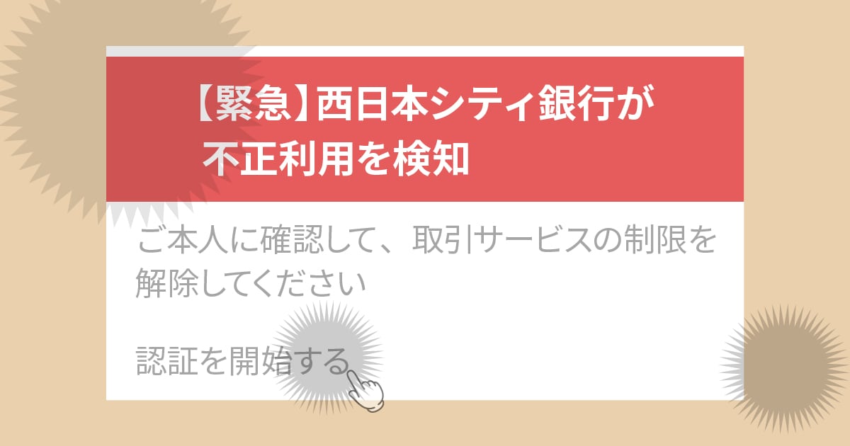 「西日本シティ銀行」を騙ったフィッシング詐欺が増加していると、フィッシング対策協議会が注意を呼びかけています。偽のwebサイトへ誘導してログイン情報などを入力させようとするものですのでご注意ください。