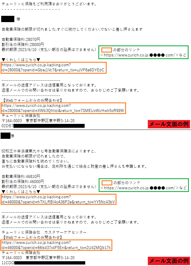 「チューリッヒ保険会社」を騙ったフィッシング詐欺が増加していると、フィッシング対策協議会が注意を呼びかけています。偽のwebサイトへ誘導して個人情報などを入力させようとするものですのでご注意ください。