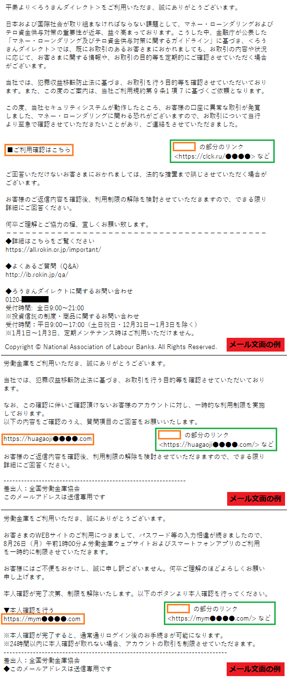 【ろうきんダイレクト】フィッシングサイト・不審メールにご注意ください