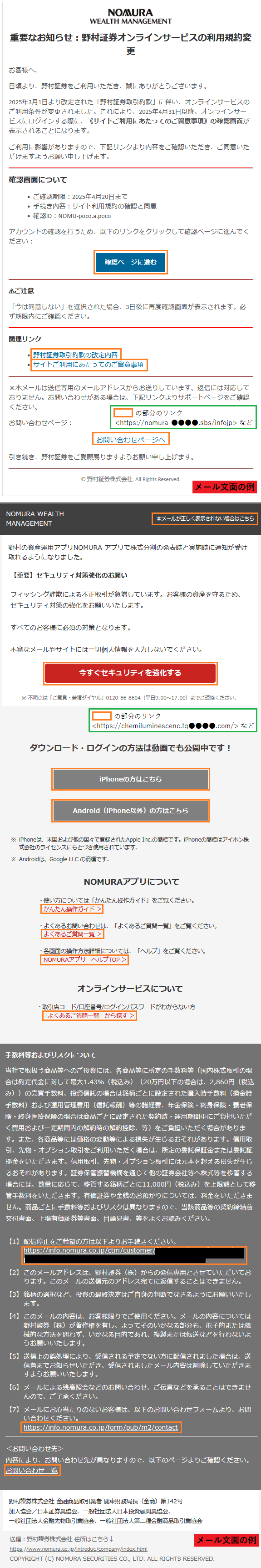 「NOMURA」フィッシング詐欺対策のお知らせ