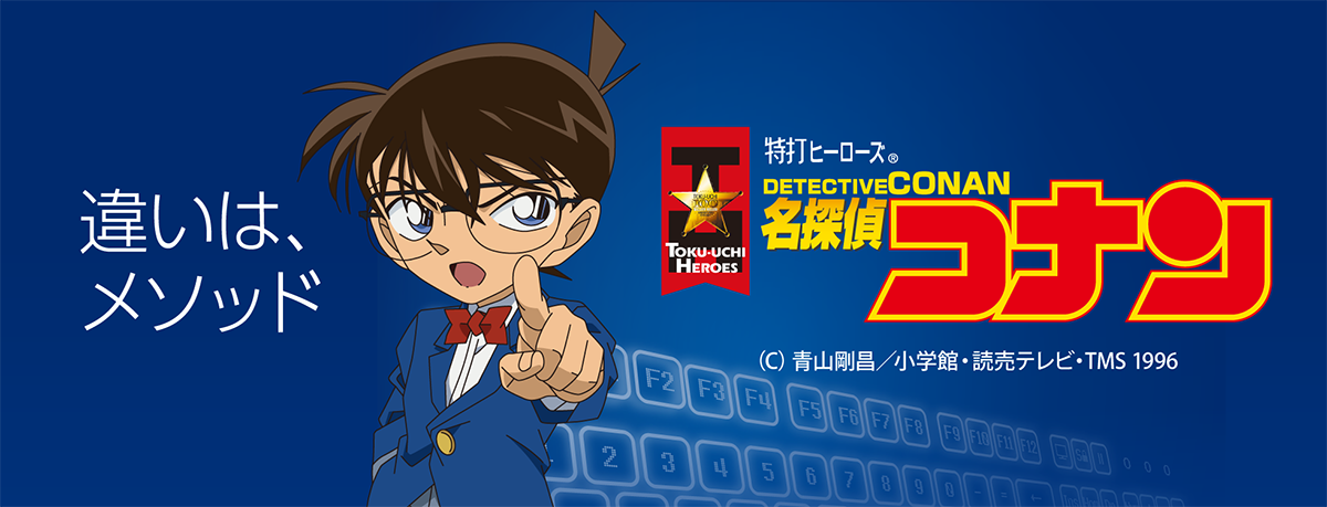 ソースネクストの「特打ヒーローズ 名探偵コナン」は、タイピング練習ソフト「特打」の名探偵コナン・バージョンです。