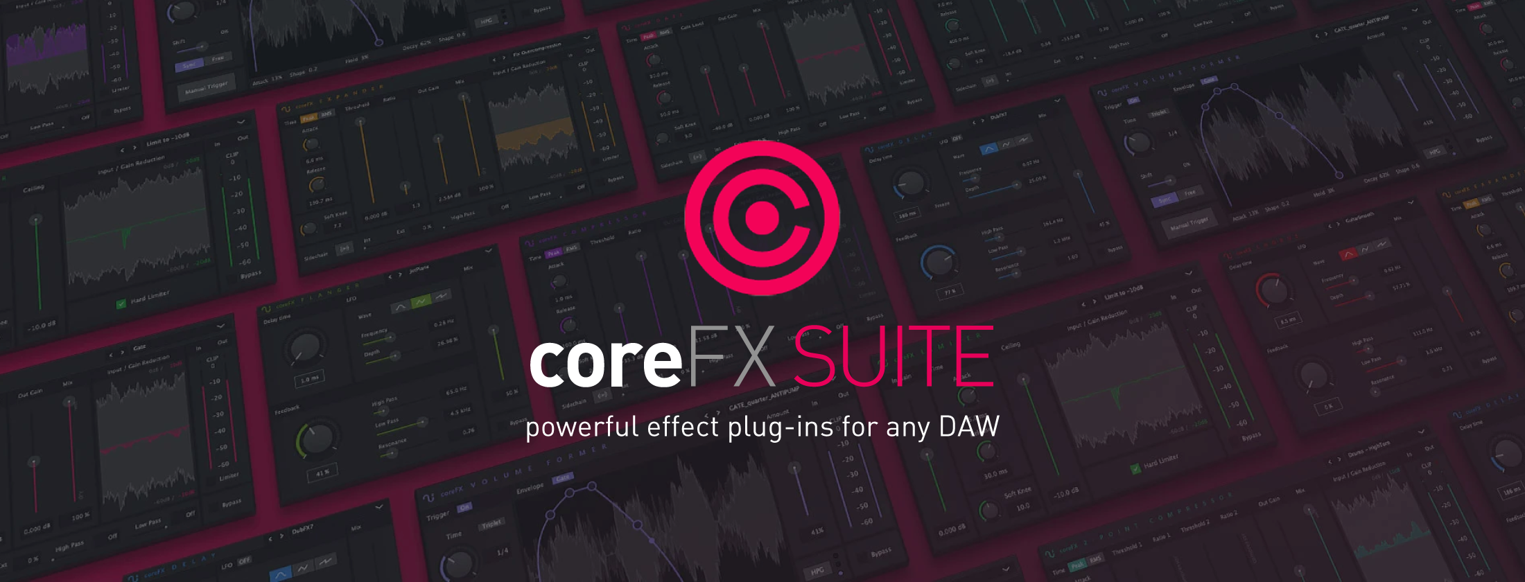 「coreFX Suite」は、ミキシングとマスタリングのためのプラグインをまとめたスイート製品です。 9つの強力なプラグインを収録しています。Windows、Macのどちらでも利用できます。