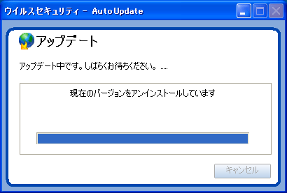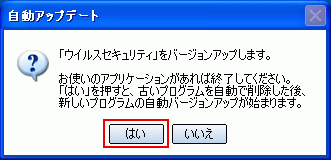 - 自動アップデート機能で、以下の画面が表示されます。「はい」をクリックすると、アンインストールが始まります。