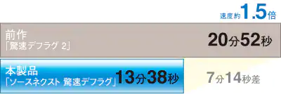 前作(「驚速デフラグ2」)とのデフラグ所要時間の比較(デフラグ100%完了時まで)