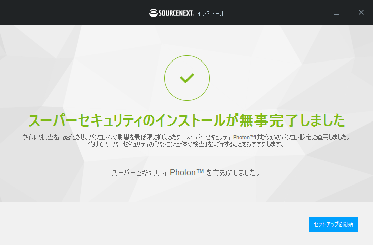 7. インストール完了画面で[セットアップを開始]をクリックします。