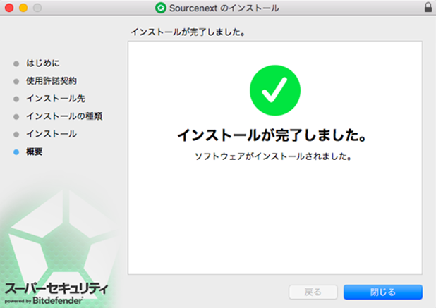 8. 「インストールが完了しました。」と表示されますので、「閉じる」をクリックします。