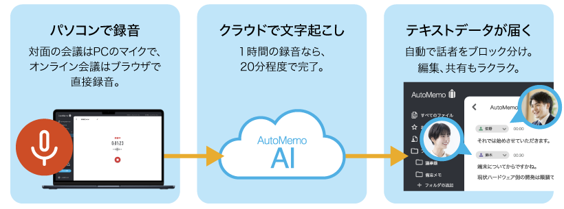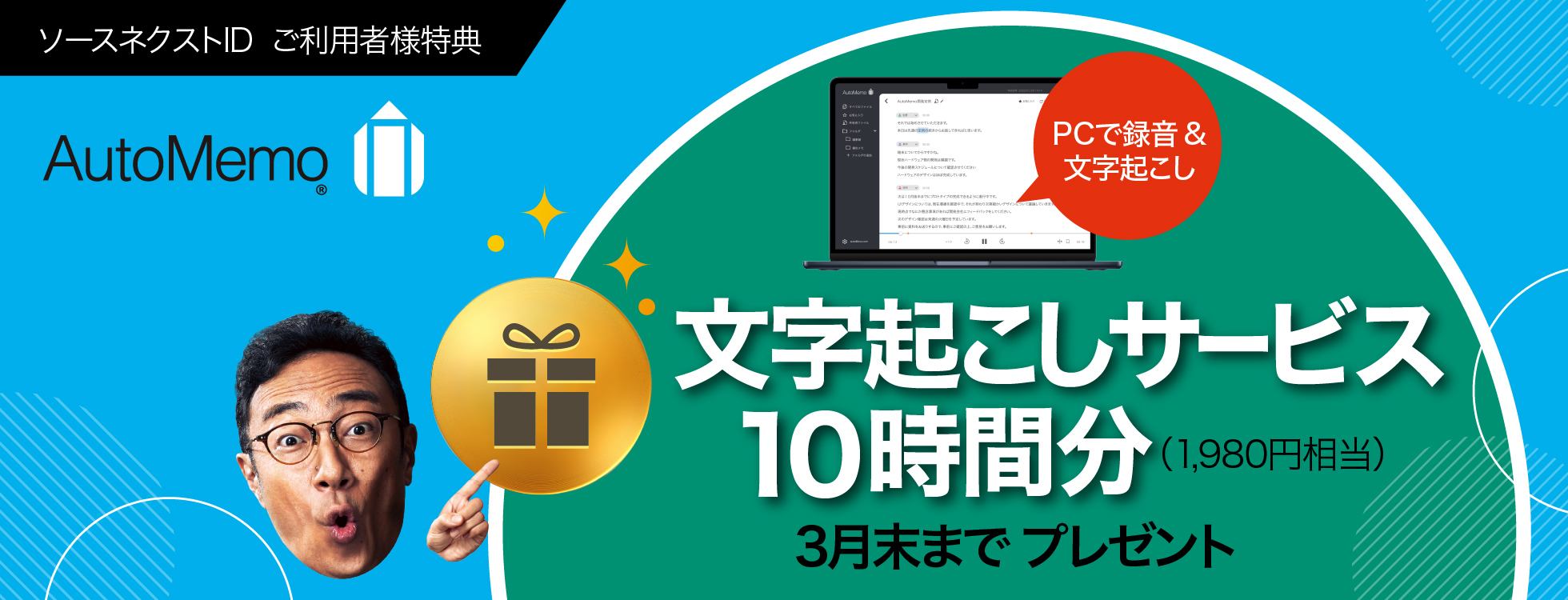 3月末までの期間限定で、ご登録ユーザー様全員に、文字起こしAI「AutoMemo(オートメモ)」を